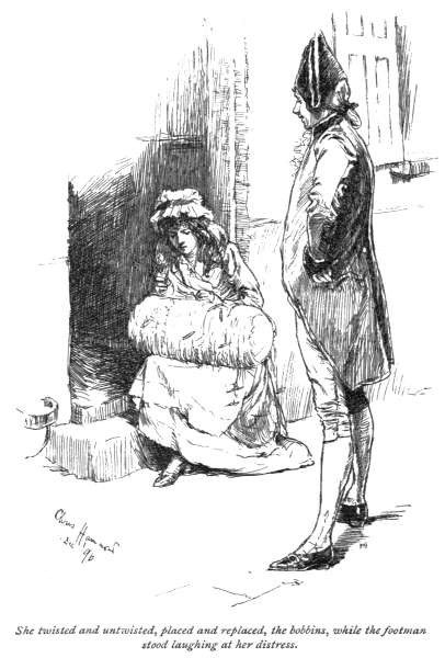 151She twisted and untwisted, placed and replaced, the bobbins, while the footman stood laughing at her distress