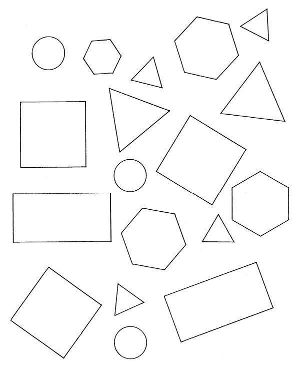Сосчитайте фигуры: прямоугольники, треугольники, круги, шестиугольники, квадраты.
