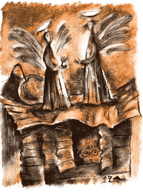 Пока Земля была пуста, Стас решил сотворить Солнце. Но плохо помыл кисточку. И Солнце получилось грязным. Не желтым, а зеленым, как лайм. Стас разревелся. Он еще не знал, какого цвета лайм и вообще – что эта за штука лайм. Но он твердо знал, что за штука Солнце и что оно обязано быть желтым.