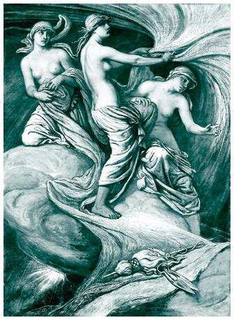 Три Парки / Судьбы, сокрытые в звездах. Картина Э. Веддера. 1887 г.