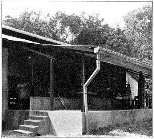 In some drying-houses, besides the ridge openings, the space along the eaves is left open. This would seem to be undesirable, as it provides for the entrance of outer air, which might combat the ascending warm air and so interfere with the natural upward currents. Provided that a jack-roof or other suitable openings have been installed, there is, therefore, no necessity for the existence of open spaces at the eaves, and they probably do more harm than good.