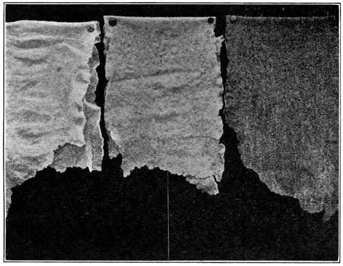 Allusion has been made to the necessity for avoiding the running “free” of rolls—i.e., in the absence of rubber. The grinding of the rolls, when working close together, produces a fine powder, which causes a more or less pronounced deposit on pale crepe. When the rolls have been in action for some time and become slightly worn, this deposit may be confined only to the edges of the rubber.