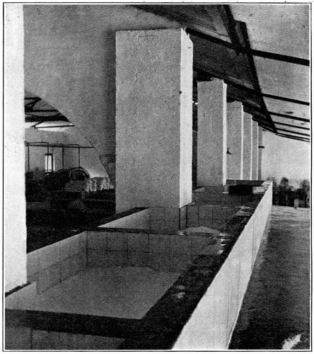 [16] Windows imply the existence of walls. Such is the conventional design of factories. It may be pointed out that walls are not necessary. The roof may be supported on pillars between which expanded metal of large size may be placed. This fulfils all requirements and gives the maximum of light and air. Many new factories have been erected to such a design.