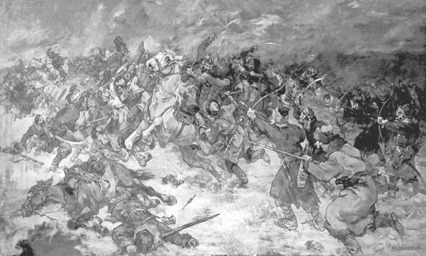 Н. С. Самокиш. Бой разинцев с правительственными войсками на реке Алатырь. 1936