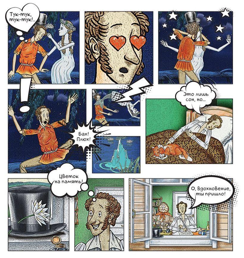 – Хам! – вскрикнула она, отвесив поэту пощёчину сверкнувшим серебристой чешуёй хвостом, и нырнула в озеро. Александр, потеряв равновесие, с криком «Ру-сал-ка!» упал вслед за ней…