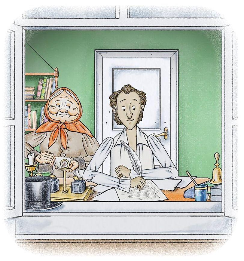 Няня поправила лампадку, заботливо накинула плед на плечи поэта и присела с ним рядом. Она решила не нарушать тишины разговором, лишь застучала спицами, принявшись за вязание.