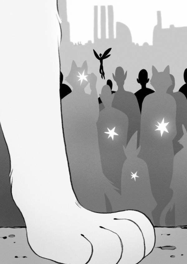 Пока за окном небо зачем-то сменило цвет с беззаботно-голубого на подозрительно-красный, глава полиции пытался просто поесть. Влетевший подчиненный зачем-то затараторил что-то про красный уровень опасности, необходимость срочно действовать. Но сэр Пур-Пур, будучи котом-оборотнем среди псов, придерживался стратегии благоразумного невмешательства. Некоторые называли его «альтернативно смелым». Сэр называл себя энергосберегающим и просто благоразумным.