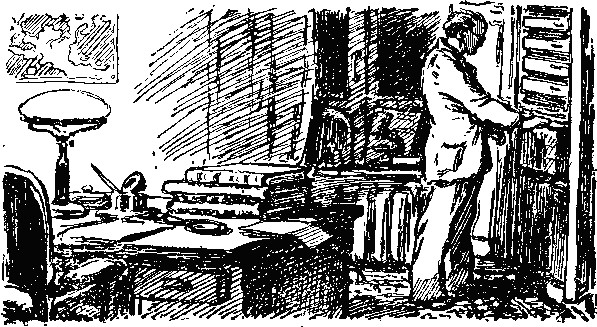 Вошедший снял старый военный плащ, вытер платком лицо, пригладил свои легкие светлые волосы, сильно поредевшие на темени, сел в кресло, закурил, опять встал и начал ходить по комнате, загроможденной шкафами и столами.