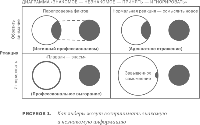 Капитану «Титаника» Эдварду Джону Смиту доложили лишь о четырех телеграммах из семи, предупреждающих об айсбергах. Почему? Просто он проигнорировал содержание предыдущих. С точки зрения его подчиненных, после первой телеграммы новая информация ему была ни к чему. С точки зрения капитана, информации там вовсе не было. Он ведь знал о льдах почти все и уже принял решение о смене курса на более безопасный маршрут. В 2000-х глава Lehman Brothers Дик Фалд точно так же игнорировал тревожные сигналы о своих рискованных операциях. Ни Смит, ни Фалд не были самодовольными и напыщенными идиотами. Они были опытными профессионалами. Профессионалами, которые провели на своем посту слишком много времени. Им казалось, что они уже готовы к любым поворотам судьбы. «Плавали — знаем», — говорим мы о своем богатом опыте в каком-либо деле.