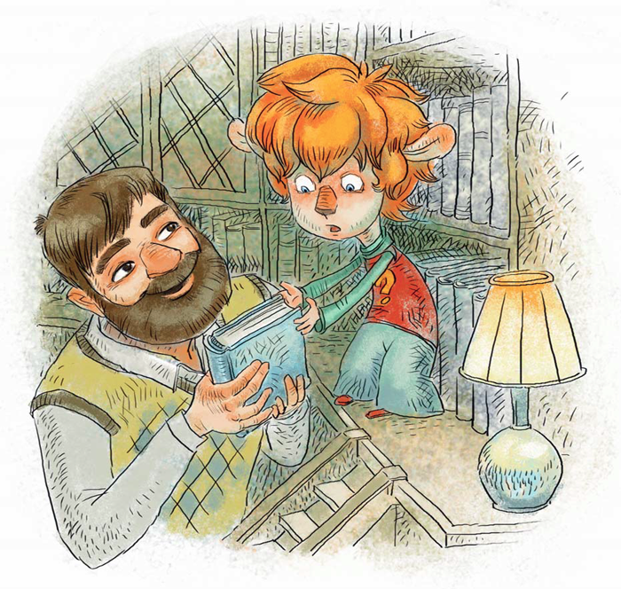 — Здравствуй, Чевостик. Во-вторых, надо вернуть книги на полку. Я буду их подавать, а ты расставляй по местам.
