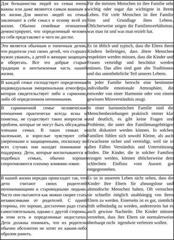 Сейчас много людей во всем мире покидают свои маленькие села и едут в города, чтобы там найти работу. Это происходит уже 200 лет. Если в горо- де или вблизи города появляются новые промышленные предприятия, то здесь могут получить работу новые люди. Семьи этих новых рабочих нуждаются в школах, больницах и магазинах. Так возникают новые рабочие места в сфере обслуживания. Значит, города все время растут. Каждый большой город имеет деловой район, где находятся офисы круп- ных компаний. Тут Вы увидите огромные городские кварталы небоскребов. Тут находится также очень много офисов, в которых работает много людей из приго- родов. Ежедневно они совершают путь до места работы и домой. В пригородах есть все необходимое, что нужно жителям. Но что может случиться с большими городами? У них сегодня большие экологические и транспортные проблемы, так как они перенаселены. Я считаю, что лучше всего жить в небольшом городе. Но жизнь в сельской местности дает людям здоровую жизнь, так как здесь нет больших экологи- ческих проблем. Жители имеют всегда свежие продукты питания. Они рабо- тают на свежем воздухе. Им не нужно ежедневно пользоваться общественным 99 транспортом. В сельской местности можно также хорошо отдохнуть, потому что все места отдыха находятся совсем близко. А что касается быта, то они имеют такие же условия жизни, что и горожане. Жители деревень хорошо знают друг друга, они помогают друг другу и живут как одна большая семья.