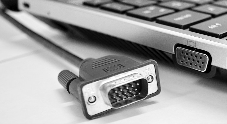 В некоторых ситуациях, например при просмотре фильмов, большой настольный монитор гораздо предпочтительнее маленького экрана ноутбука. Именно поэтому производители ноутбуков обычно предусматривают возможность подключения настольного монитора к переносному компьютеру. Обратите внимание: по периметру корпуса ноутбука находится множество различных разъемов. Шнур для подключения монитора вставляется в разъем, показанный на рис. 1.3.