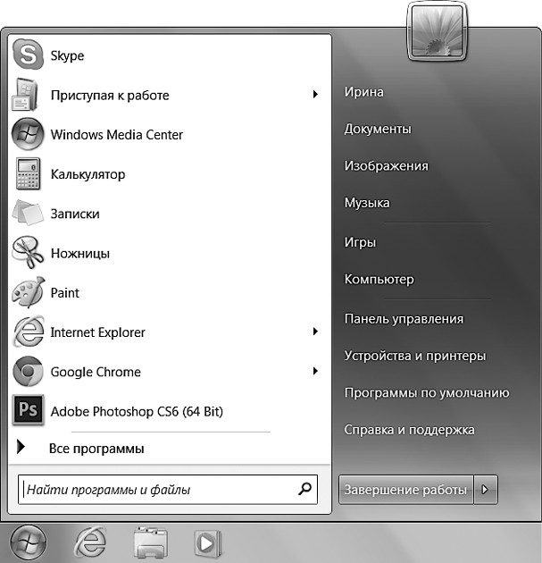 Рис. 2.4. Меню Пуск открывается, если нажать большую круглую кнопку