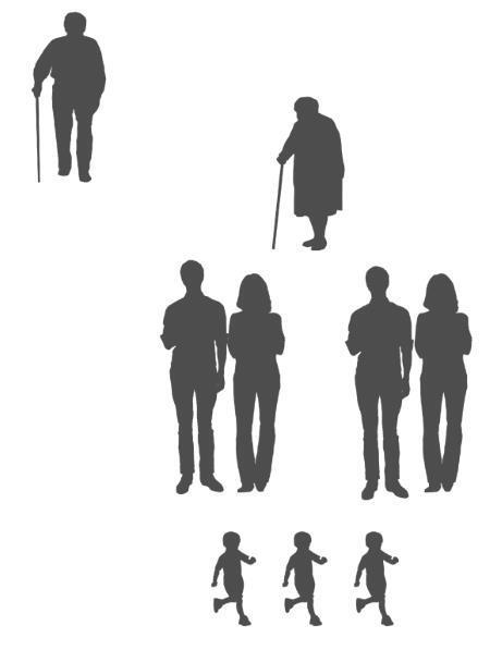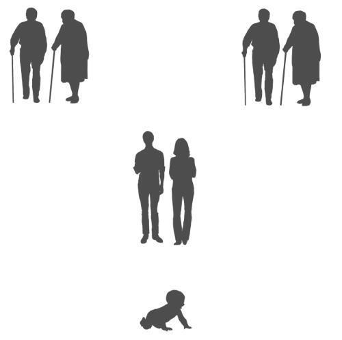 Третья картинка. Молодая семья живет с родителями мужа. Как видите, дети тут поставлены на один уровень с родителями. Если ваша с мужем семья еще не встала на ноги, то придется свыкнуться с тем, что в этой системе вы будете играть роль детей. Например, в таких семьях внука и внучку могут называть сыночком и дочкой – и это абсолютно оправданно, потому что в такой иерархии вы встаете на один уровень с собственными детьми и не воспринимаетесь как самостоятельные взрослые люди.