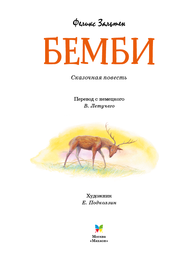 Бемби : сказочная повесть / Феликс Зальтен ; перевод с нем. В.Летучего ; худож. Е.Подколзин. – М. : Махаон, Азбука-Аттикус, 2022. – ил. – (Яркая ленточка).