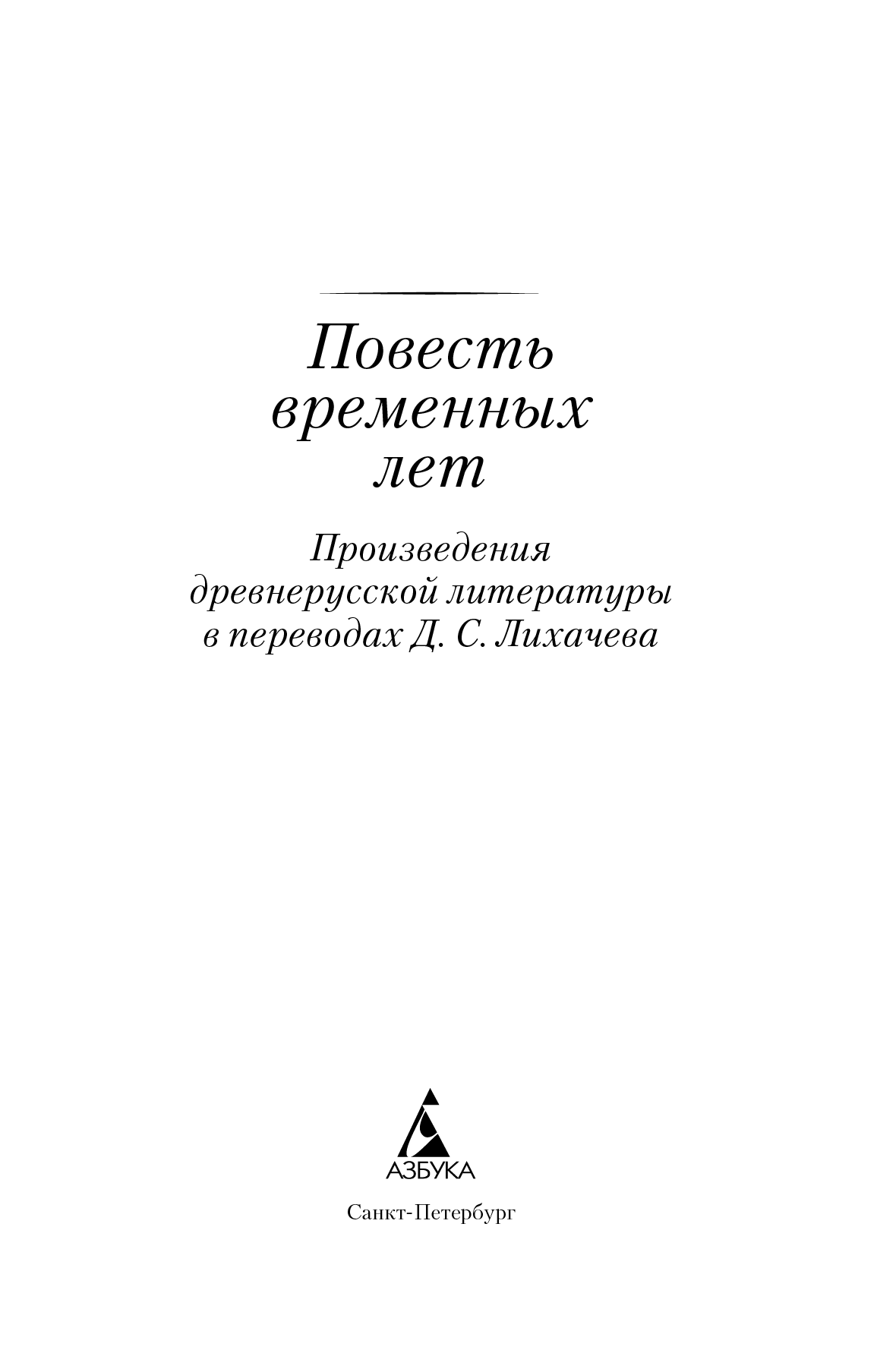 Повесть временных лет : Произведения древнерусской литературы в переводах Д. С. Лихачева. — СПб. : Азбука, Азбука-Аттикус, 2023. — (Азбука-классика. Non-Fiction).