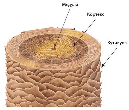 Итак, внешняя, видимая, часть волоса состоит из трех основных слоев (рис. 2).