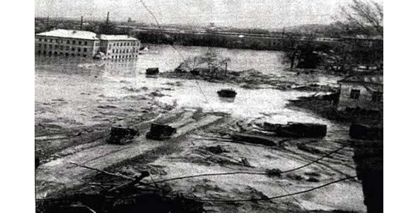 Рис. 1.1.Последствия прорыва дамбы гидроотвала «Бабий яр» в Киеве в 1961 г. [15].