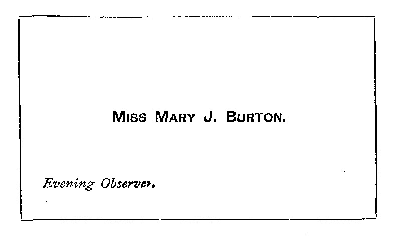She was a personality, was Miss Burton of the Evening Observer. Her cards were printed thus: