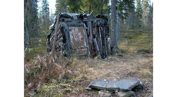 Разыскиваем завал, по скользким бревнам с трудом и риском перебираемся через речку Аверину и Илюшиху. На противоположном берегу находим свежие следы человека: порубку и тропу. Зимовья нет. Потом находим и зимовье. Его подмыло и оно провалилось в землю, одна крыша торчит над землей, да и та заросла мохом.