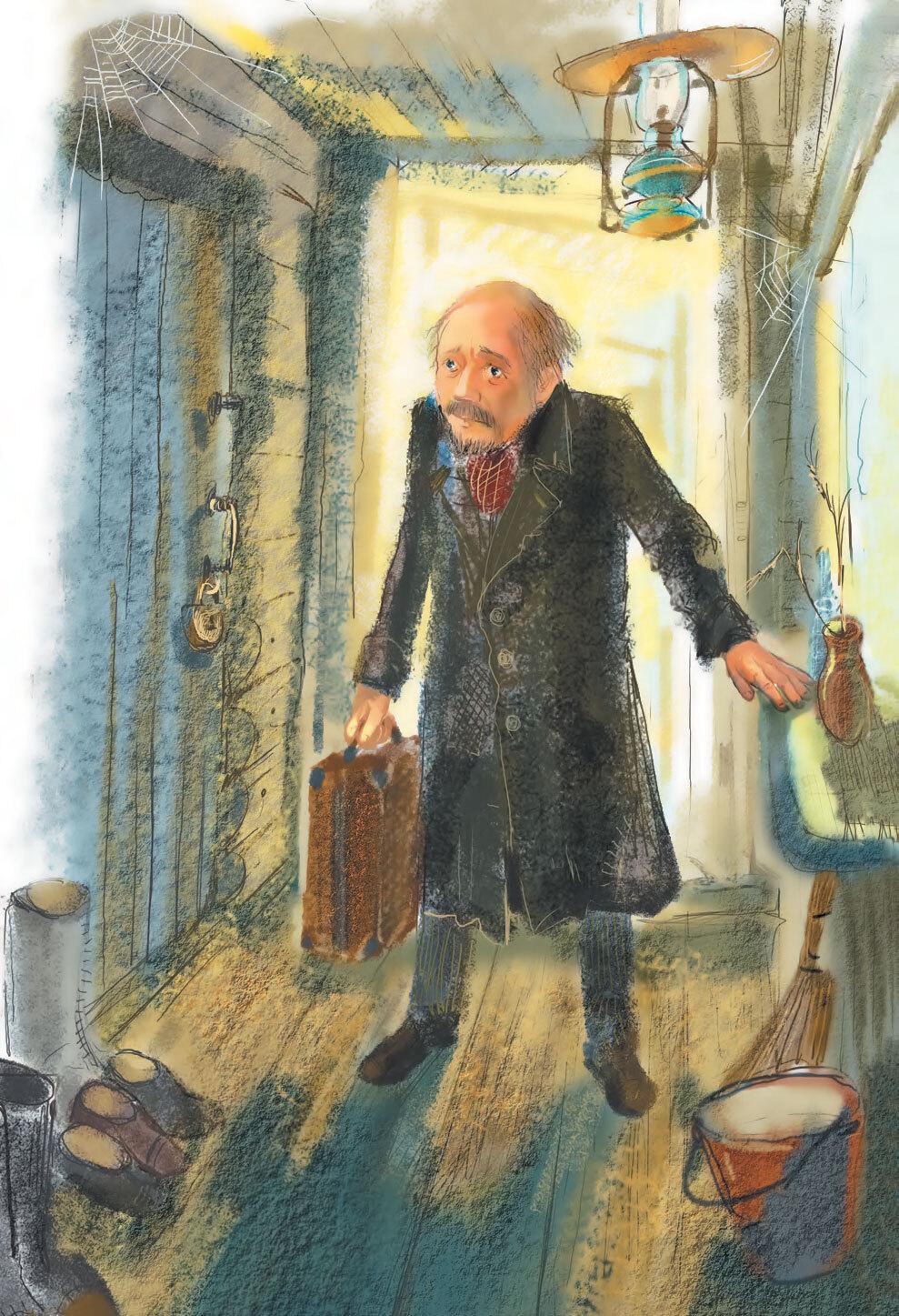 Страх и ужас до крайней степени овладели Николаем Николаевичем – подумать только, картины исчезли! Он попробовал сделать шаг, но поскользнулся и еле устоял – пол был покрыт тонким слоем легкого инея. Тогда он заскользил дальше, как на лыжах, оставляя длинные следы по всему дому.