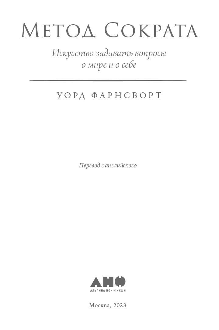 В книге объясняется, что такое сократический метод и как применять его в первозданном виде, то есть в той манере, в какой это делал сам Сократ в диалогах Платона. Это книга о том, как работает наш разум. Кроме того, в более широком смысле это и практическое введение в философию прославленного мудреца. Сократическая философия неизменно поражает: она не дает окончательных ответов на сложные вопросы, но зато содержит в себе навык задавания сложных вопросов и поиска ответов на них. Сократический образ мысли — путь к мудрости, но не сама мудрость в готовом виде; он в принципе отрицает возможность того, что мудрость может быть окончательной и завершенной. Предложенный Сократом метод полезен в размышлениях о любой проблеме, какой бы насущной или, наоборот, тривиальной она ни была, — и о том, как правильно жить, и о том, кому выгуливать собаку.