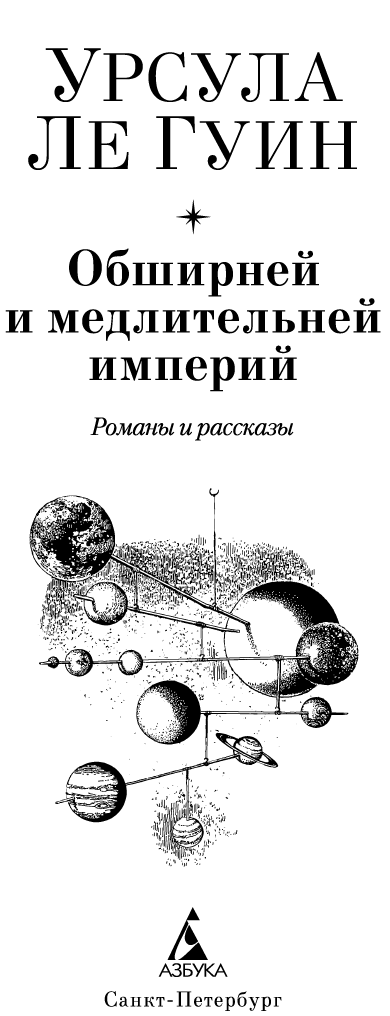 Обширней и медлительней империй : романы, рассказы / Урсула Ле Гуин ; пер. с англ. И. Гуровой, О. Васант, А. Новикова и др. — СПб. : Азбука, Азбука-Аттикус, 2016.