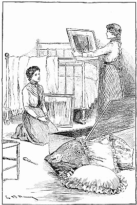 Every dress, as she lifted it out, seemed a bit of home. Here was the triangular tear in her blue gingham, that Jean mended for her. One could hardly see it now! Dear Jean! she was neat-handed, and she had a little look of Margaret, the same soft hair and clear, quiet eyes. Here was her beloved bicycle skirt! Ah, there was something heavy in the pocket. Peggy explored, and drew forth an apple; that brought the tears, which were not very far off in the first place, and there was a good deal of salt in the apple as she ate it. She was so determined to make the best of everything, however, that she fought back the homesickness that was rising like a flood within her, and even managed to whistle a tune as she hung up her dresses and laid her stockings and handkerchiefs in the drawers. Then the shoe-bag must be hung against the closet door, the bag that Margaret had made and worked with her initials. Dearest Margaret! and here was the pincushion that Flora gave her, and the writing-case from Brother Hugh— Oh! she would write to him every week of her life, indeed she would! and so on and so on.