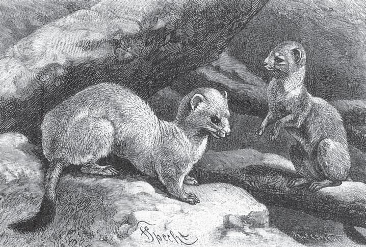 Горностаи состоят в близком родстве с норками, куницами и ласками. Все они хищники и питаются мышами, кроликами, крысами и птицами. Вот почему этих зверей ценят не только за их великолепный мех, но и за то, что они в больших количествах истребляют грызунов. В то же время люди стараются получше укрепить курятники, так как эти хищники таскают кур. Одна только ласка за ночь может убить до 40 кур.