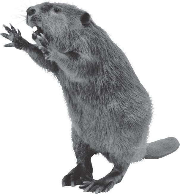 Бобры относятся к породе грызунов и имеют четыре очень острых передних зуба – резца. Этими зубами бобер пилит стволы деревьев толщиной до 25 см, а тонкие ветки в 2 см толщиной может перегрызть в два укуса.