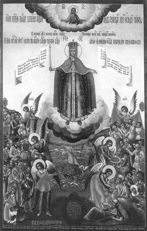 Боголюбивая Царице, неискусомужняя Дево, Богородице Марие, моли за ны Тебе возлюбившаго и рождшагося от Тебе Сына Твоего, Христа Бога нашего: подати нам оставление прегрешений, мирови мир, земле плодов изобилие, пастырем святыню и всему человечу роду спасение. Грады наша и страны российская от нахождения иноплеменных заступи и от междоусобныя брани сохрани. О Мати боголюбивая Дево! О Царице всепетая! Ризою Своею покрый нас от всякаго зла, от видимых и невидимых враг защити и спаси души наша. Аминь.