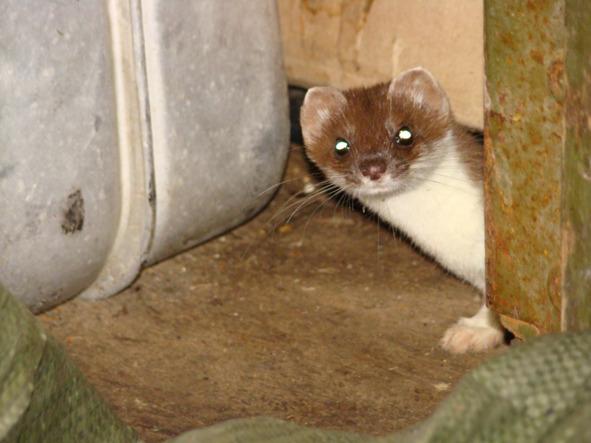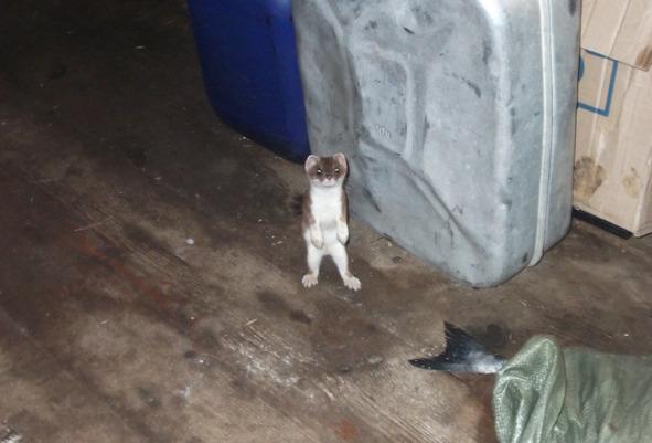 А вот горностай, или ласка показали нам, как выглядит шухер. Хочу только заметить, что это все растительное масло, а вот сливочное я видел в 11 году. Горностай залез в сени, прогрыз дырку в мешке и пытался вытащить из нее симу.