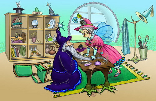 Без предисловий и вступлений ворвалась она в кабинет погруженного в послеобеденную пищеварительную дрему чародея и стукнула маленькими кулачками о край его рабочего стола так, что подпрыгнул чугунный письменный прибор, а какао из чашечки перед его премудрием взвилось испуганно в воздух и приземлилось в чернильницу.