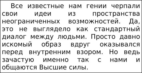 Вся моя книга будет об этом. О божественной поддержке. О прикосновении к тонкому высоковибрационному миру, которое не может ощущаться ничем иным, кроме как причастностью к Истине, Красоте, Благодати. И это не удел избранных, а участь каждого, кто ищет становления на духовном пути. И не важно как: отчаянными молитвами на воскресных службах, многочасовыми медитациями в горных пещерах или просто любя свою семью, работу, жизнь и желая жить по совести вне религиозных учений.