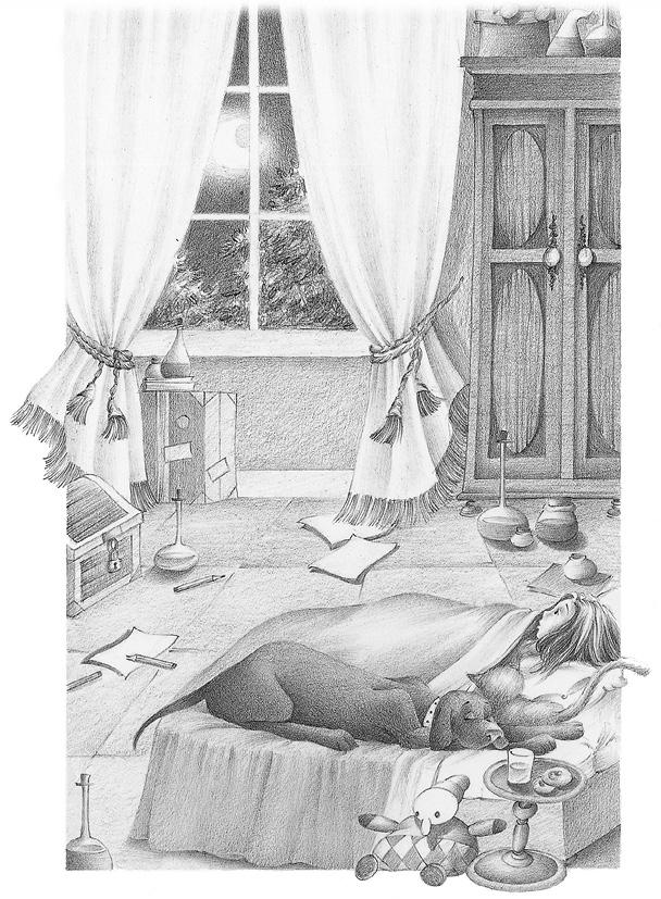 А пока она, глядя на луну, расчесывала свои длинные каштановые волосы и время от времени гладила верного друга, дога Красавчика, лежавшего рядом.