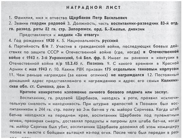 И еще о подвигах сыновей полков, дивизионов, эскадрилий, юнг военных кораблей. В 1944 году 15 245 школьникам — активным участникам защиты Ленинграда была вручена медаль «За оборону Ленинграда». За активное участие в обороне столицы 2000 подростков были удостоены медали «За оборону Москвы». Георгий Воронцов-Вельяминов — праправнук А. С. Пушкина — 17-летним ушел в действующую армию, участвовал в освобождении Венгрии, дошел до г. Линца в Австрии, где наши части встретились с американскими войсками8.