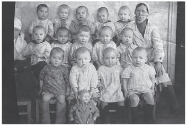 Рис. 9. Ясельная группа. С куклой — Е. Савинова. 1942 год