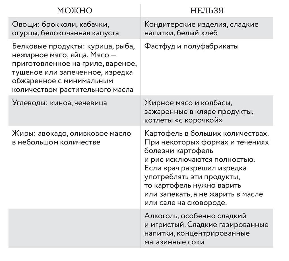 Не стоит воспринимать эту книгу как единственное руководство к действию, обязательно проконсультируйтесь с врачом: дело в том, что у нескольких людей с одинаковой формой диабета могут быть разные реакции на одни и те же продукты. Кто-то, например, безболезненно может есть гречневую кашу в умеренных количествах, а у кого-то она вызовет резкий скачок сахара в крови. Кроме того, влияние могут оказать другие сопутствующие заболевания (гастриты, аллергии, гипертония и так далее). Подход должен быть системным! И даже если вы получили рекомендации врача относительно того, что вам можно, а что нет, вводить новые блюда в свой рацион нужно предельно аккуратно, пристально следя за своим состоянием.