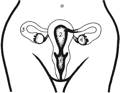 Рис. 1. Внутренние женские половые органы: 1 – влагалище; 2 – матка; 3 – маточная труба (яйцевод); 4 – яичник