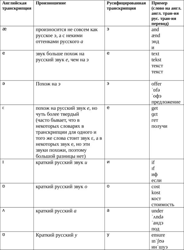Английская и русифицированная транскрипция