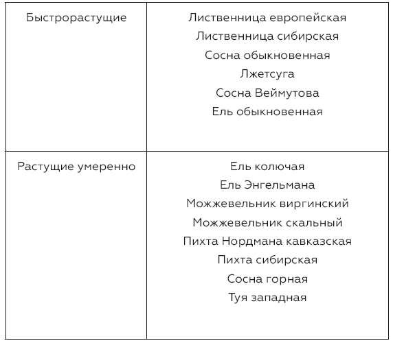 Необходимо различать быстро и медленнорастущие виды хвойных растений.