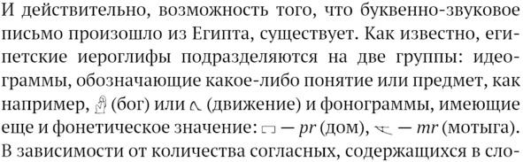 Не исключено, что иностранец, знакомый с египетскими иероглифами, мог использовать этот принцип для создания собственного письма. Здесь к месту будет вспомнить легендарного еврейского пророка Моисея, научившего евреев писать, который, по преданию, воспитывался в семье египетского фараона. Правда, не совсем понятна в связи с этим графическая форма семитских знаков. Они как-то мало похожи на свои египетские прототипы. Либо изобретатель семитского письма использовал только сам принцип, а форма знаков была принята им, исходя из местных реалий, либо она претерпела довольно значительные изменения с течением времени. В последнем случае где-то должны были сохраниться надписи, содержащие переходные формы. Вполне может быть, что к таковым относятся так называемые протосинайские символы. Знаки гублского (библосского) слогового письма также производят впечатление чего-то среднего между египетскими иероглифами и семитскими буквами. Однако, учитывая все вышесказанное о трудности перехода от слоговой письменности к звуковой, очень сомнительно чтобы оно было предком семитского алфавита. Скорее наоборот — предок семитского письма был прообразом для гублского. Доказать или опровергнуть все это невозможно, поскольку обе эти письменности до сих пор не дешифрованы.