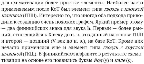 Большой клинописный угол заменялся шевроном, тупоугольным равнобедренным треугольником, но чаще всего — окружностью. Как появилась последняя форма сказать трудно, но традиция эта уходит корнями еще в угаритское письмо. Уже там символ айн иногда заключали в кружок. Его использовали также вместо шин (š). Таким образом, используя вышеперечисленные элементы, древние семиты приспособили угаритскую клинопись к другому материалу и способу нанесения, изменив и форму знаков. Пока это всего лишь гипотеза, которую еще требуется подтвердить. С этой целью в дальнейшем мы изучим знаки древнейших алфавитов Месопотамии на возможность их происхождения от угаритских прототипов. Но прежде чем приступить к доказательству, наверное, не будет лишним познакомиться с самой угаритской письменностью.