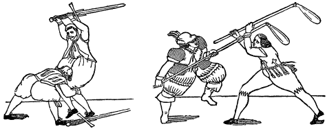 Разница между такой «хирономией»[27] и фехтованием совсем невелика. Очевидно, эти жонглеры или танцоры с мечами были первыми представителями тех искусных бойцов и мастеров фехтования, которые так часто упоминаются в елизаветинской литературе.