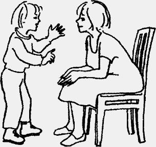 Заметим, что в этом разговоре первые же ответы мамы на слова мальчика («Не можешь сам справиться», «Тебе не нравится рубашка») настраивают ее на то, чтобы действительно послушать его, услышать его ответы, а не только свои приказания. В результате сын охотно делится своей действительной проблемой, и мать готова ее принять. Если же разговор идет первым способом, то неизбежно появляется следующий тип родительских фраз.