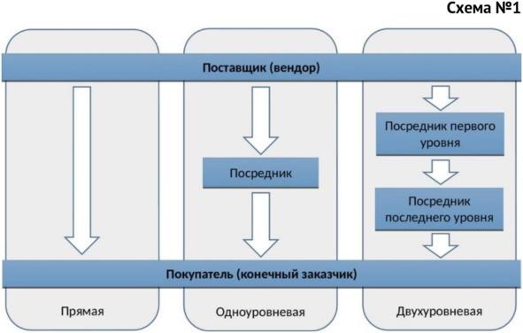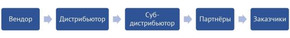 Существует несколько схем поставок, но в качестве базиса взята ставшая классической схема поставки с участием дистрибьюторов и партнёров: