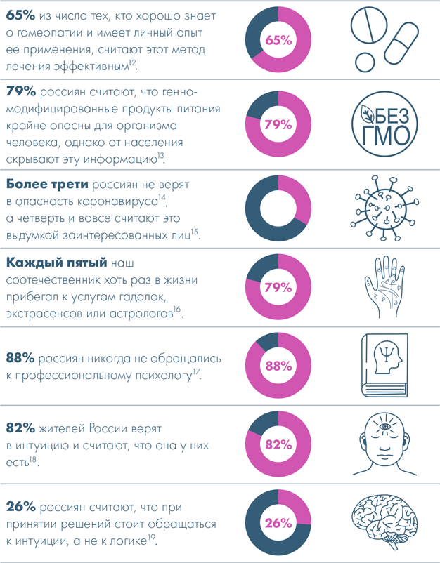 Давайте разберемся, почему эти суждения мы считаем мифами и заблуждениями и откуда все они берут начало. Каждому мифу будет дано детальное описание со ссылками на научные изыскания, а также результаты наших исследований BSSR — с количеством людей, которые верят в это.