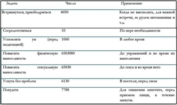 — Произносите мысленно числа для медитации (см. таблицу чисел).