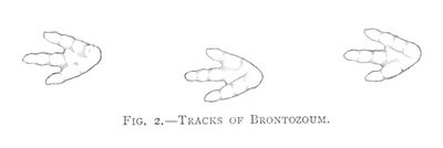 Of such impressions there are untold thousands upon these sandstones. Fifty or sixty different kinds have been discovered, and they cover vast areas. But, up to this present time, not a bone, not a fragment, of any one of the animals which left these great footmarks has been found; in fact, the only animal remains which have been met with in all these deposits, from the time of their discovery to the present day—though they have been carefully hunted over—is a fragmentary skeleton of one of the smaller forms. What has become of the bones of all these animals? You see we are not dealing with little creatures, but with animals that make a step of six feet nine inches; and their remains must have been left somewhere. The probability is, that they been dissolved away, and absolutely lost.