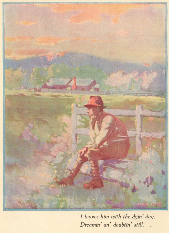 Then blinks 'er eyes, an' tries to work a smile.